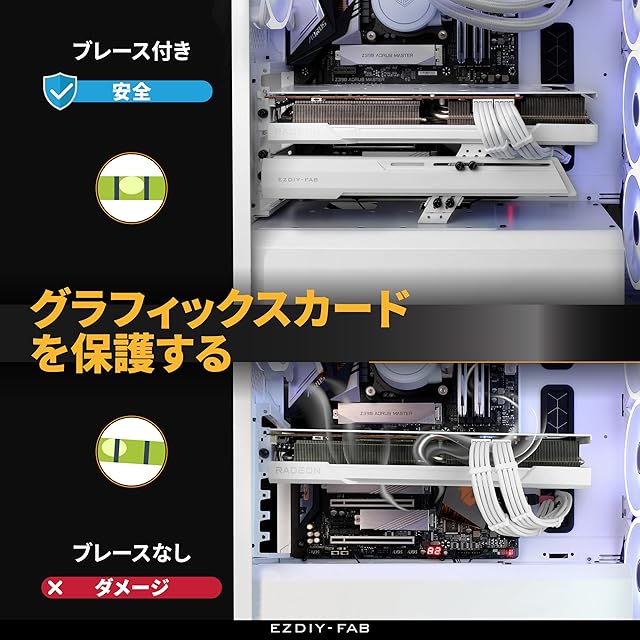 EZDIY-FAB 汎用ビデオカードホルダー GPUブレースサポート グラボ 支え gpu サポート 伸縮構造ブラケット グラフィックカードを固定する GPUを支える GPUブラケット GPUスタンド - 白