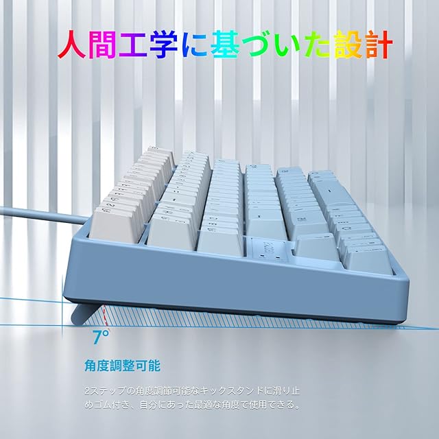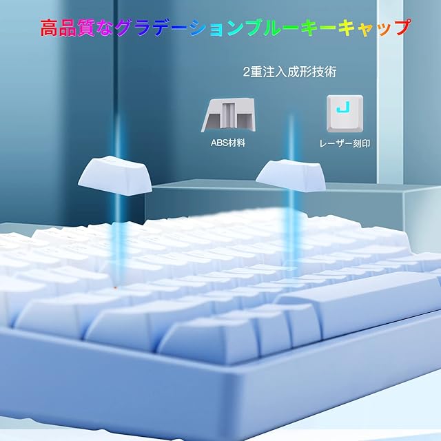 【青軸を採用・さわやかな音】▶軽快でさっぱりとした打鍵感と、カチッカチッとした小気味いい打鍵音。メカニカルキーボードの特徴で最もあるの高品質な青軸を採用し、接点部にはっきりとしたクリック感があります。心地よいクリック音と軽いキータッチで高速入力にも長時間入力にもストレスを感じません。長い文章などを打ち込むことに最適です。キーを押すたびに素晴らしい触覚フィードバックを提供します。