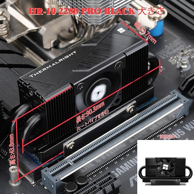 Thermalright HR10 2280 pro black ssdクーラー、2280 ssdヒートシンククーラー、両面ヒートシンク、4ヒートパイプ、2280 ssd pcおよびコンピュータ用サーマルシリコーンパッド、高性能ssdクーラー