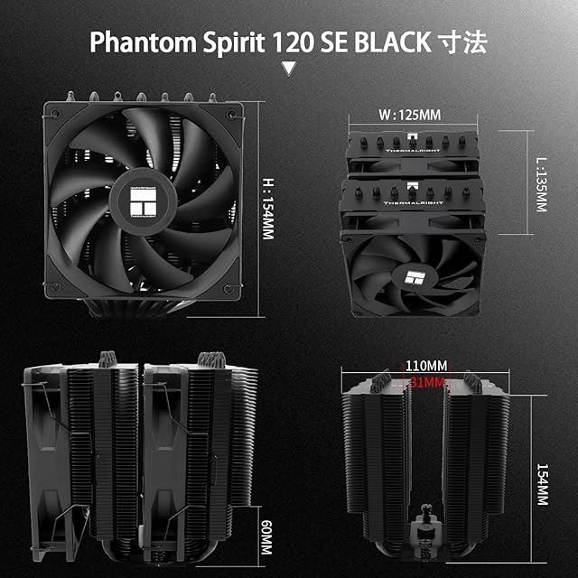 Thermalright Phantom Spirit 120 SE ブラック CPU クーラー、デュアル TL-C12B V2 PWM ファンとダブル タワー、7 ヒート パイプ ヒートシンク クーラー、AM4/AM5&Intel LGA1851/1700/115X/1200、コンピューター CPU 冷却、ブラック