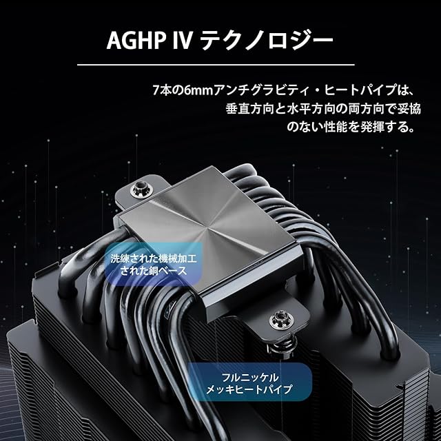 【AGHPテクノロジー】 7x6mmヒートパイプにAGHPアップグレード第4世代テクノロジーを採用し、垂直/水平方向による反重力効果を解決。CPUクーラーのTDPは105~280Wに達することができます。 S-FSBベアリングは、空冷クーラーの寿命を確保するために、最大20,000時間の産業寿命を持っています。 ULクラス安全絶縁低学年、産業強度PBT + PC材料、あなたのために高品質の製品を作成するための心を持っています。 全高は154mmで、より多くの機種のシャーシに対応します。