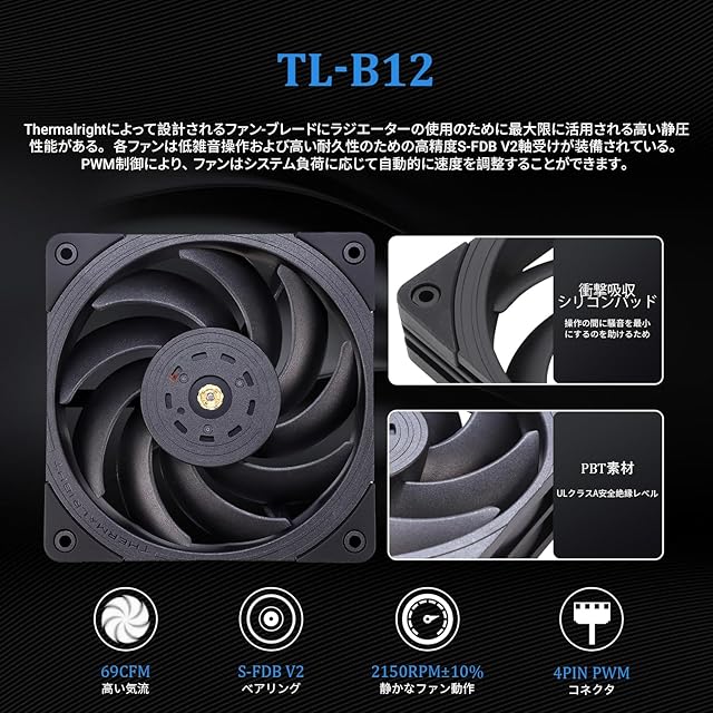 【3 個の PWM ファン】TL-B12Wバランスファンx 3、最大2150RPM±10%の速度、サイズ120 * 120 * 25mm、ノイズ≤28.1DBA、インターフェース:4ピンPWM、空気圧:2.87mmH2O(最大)、風量:69CFM(MAX)、PWM機能とバランス補正機能付きファン、PWM缶PWMはCPU温度に応じて速度を自動的に調整し、強力な風量と低ノイズを提供します(注: ファンの赤い粘土の点は粘土のバランスをとっています、スナップオフしないでください)