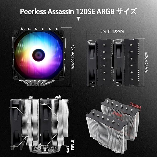 Thermalright Peerless Assassin 120 SE ARGB CPUエアクーラー、6本のホットパイプCPUクーラー、ダブル120 mm TL-C12C-S PWMファン、アルミニウム製ヒートシンクカバー、AGHP技術、AMD AM 4 AM5/Intel 1150/1151/1200/1700/1851
