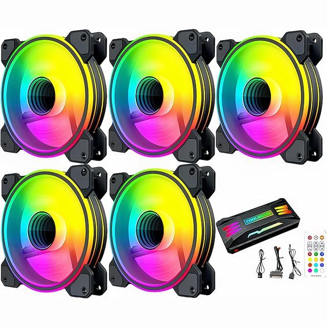 【スモールラボ】COOLMOON PCケースファン5枚セット 120mm 4pin PWM LED ARGB 5v 3pin ファンハブ コントローラー付き リモコン 色変更可能 回転速度変更可能 インフィニティ―ミラー (コントローラー+5枚セット, ブラック)