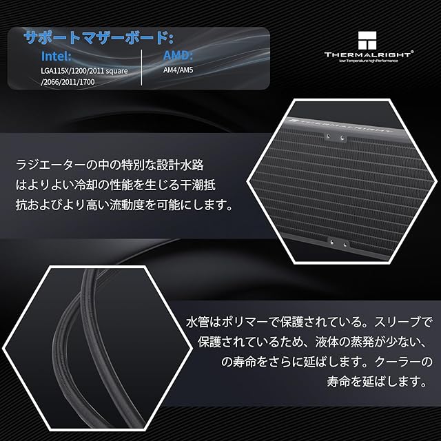 Thermalright Frozen Edge 240 Black PWMファン付きCPUウォータークーラー、ポンプ速度は3300RPMです、S-FDBベアリング、AMD AM4 / AM5、インテルLGA1150 / 1155 / 1200 / 1700 / 2011(FE240 Black)