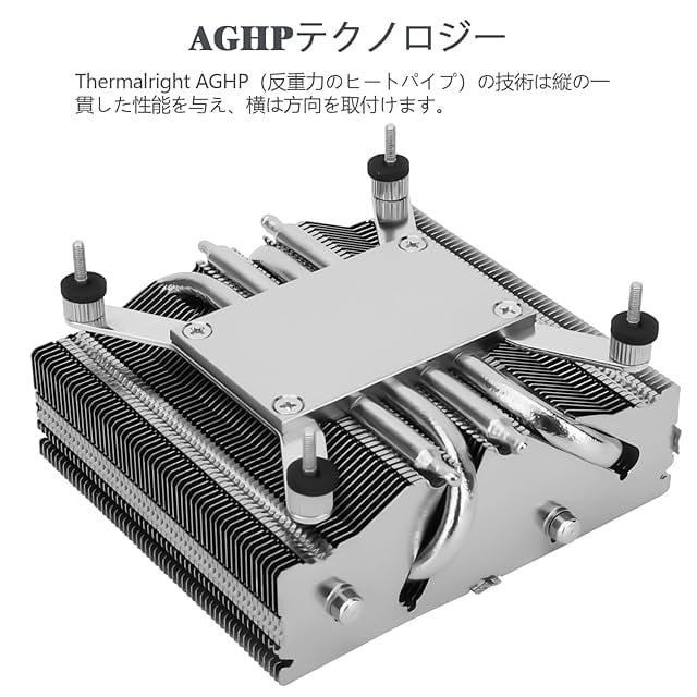 【AGHP技術】4×6mmヒートパイプを応用したAGHP技術、縦置き/横置きによる逆重力効果を解消、ヒートパイプとフィンの二次溶接プロセスにより、CPUクーラーの冷却効果も倍増します。