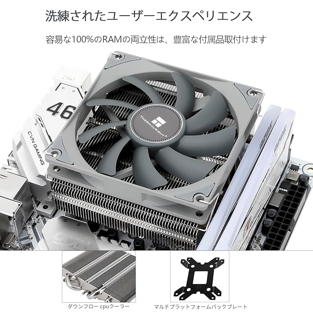 【cpuクーラー仕様】cpuクーラー サイズ:94.5×95×53mm、マッチドファン: TL-9015、風量:42.58CFM(MAX)、風圧:1.33mmH2O(MAX)、回転数:2700RPM±10%、騒音:22.4db(A)、ファンピン: 4PIN PWM、ラジエーター材質:アルミニウム。付属の熱伝導ペーストは良好な冷却効果を提供し、CPUの熱伝導を向上させることができます。