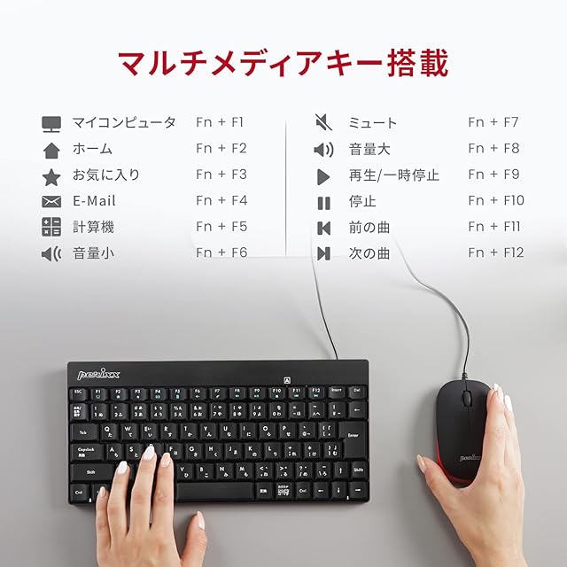 Perixx PERIDUO-212B ミニキーボード・マウスセット USB ブラック有線日本語配列