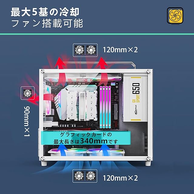 注*:本製品のファンは一切付いておりません。写真のファンは展示用です。ご了承ください
