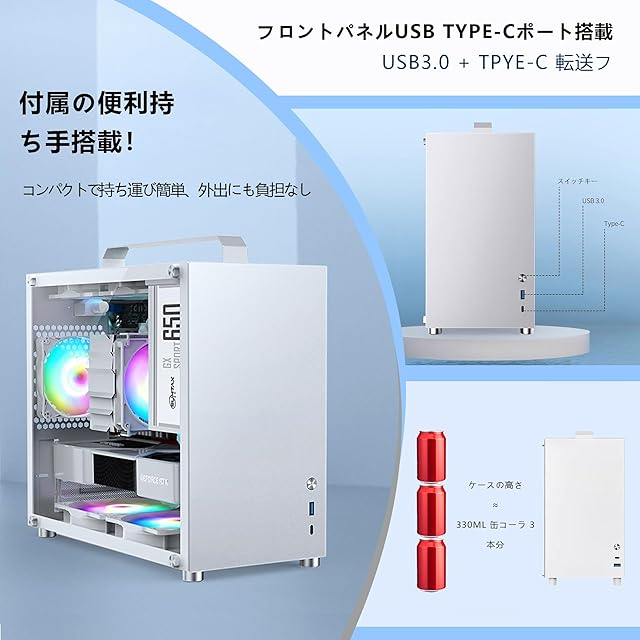 pcケース ミドルタワー pcケース 透明強化ガラスモデル micro-atx シルバー MINI型