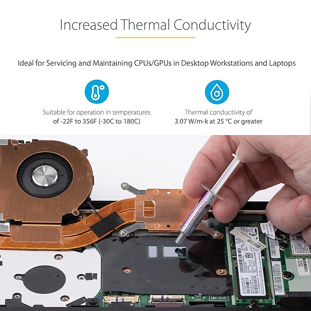 高性能グリス:摂氏-30~180度の使用温度に対応し、25度以上で3.07 W/m-Kの熱伝導率。ワークステーション、デスクトップCPU、GPUなどの保守に最適