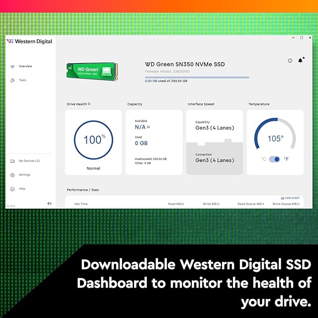 ダウンロード可能なWestern Digital SSDダッシュボードは、ドライブの状態と使用状況を監視します。