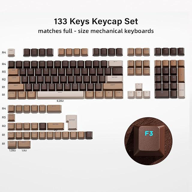 XVX シャインスルーキーキャップ -133キー チェリープロファイル ダブルショット PBT キーキャップ 60%/75%/100%レトロゲーミングメカニカルキーボードに対応 - コーヒーブラウン