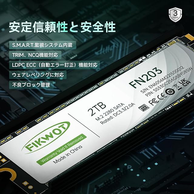信頼性と安定性 - Fikwot SSD M.2は、高品質の3D NAND TLC粒子を備えた内蔵ハードディスク、内蔵LDPC誤り訂正デコーディングを採用し、インテリジェントなSLCキャッシュ技術によりソリッドステートハードディスクの読み取りおよび書き込みパフォーマンスを高速化します。 データの送信とアクセスの正確性と信頼性を効果的に確保します。