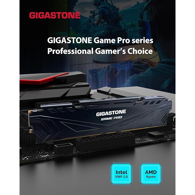 【メモリ DDR4】GIGASTONE Game PRO 16GBx4枚 (64GB Kit) DDR4 3200MHz PC4-25600 CL 16-18-18-40 Intel XMP 2.0 AMD Ryzen 1.35V UDIMM 288 ピン アンバッファー 非 ECC ゲーミング デスクトップ メモリ モジュール - ブラック