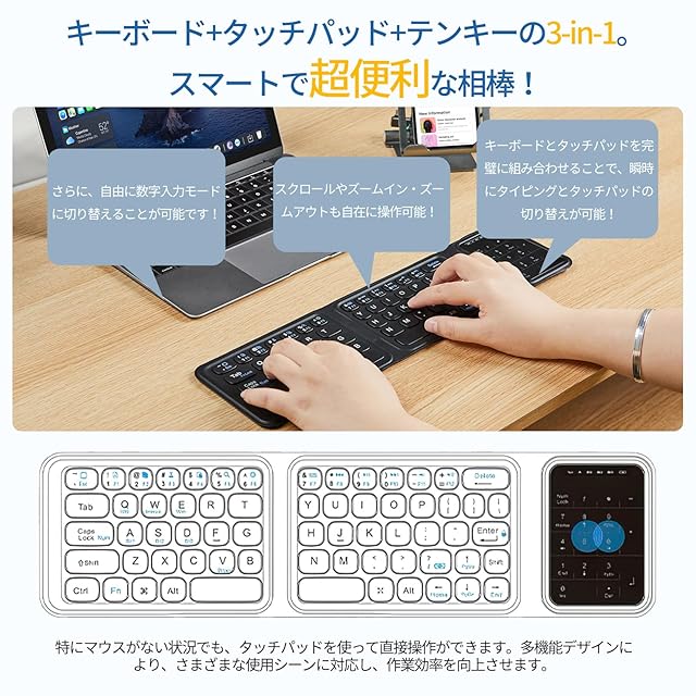 【タッチパッド搭載&安定したタイピング感】このipad mini キーボードはキーボードとタッチパッドを完璧に組み合わせることで、瞬時にタイピングとタッチパッドの切り替えが可能!スクロールやズームイン・ズームアウトも自在に操作可能!さらに、自由に数字入力モードに切り替えることが可能です!特にマウスがない状況でも、タッチパッドを使って直接操作ができます。多機能デザインにより、さまざまな使用シーンに対応し、作業効率を向上させます。キーキャップの脱落防止装置は長時間使用してもしっかり固定され、安定したキーキャップ設計により、タイピング体験が向上します。打鍵感と静かさ両立で仕事にも使えます。