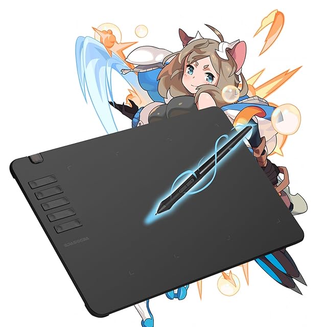 Spaseeba ペンタブレット ペンタブ T906 10x6インチ 板タブ 筆圧8192レベル10つショートカットキー 充電不要 ペン超薄型 携帯便利 クリスタ オンライン授業 初心者 ペンタブレット