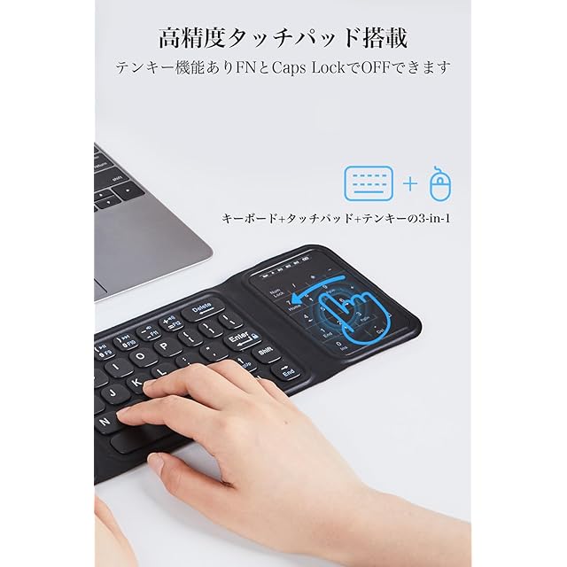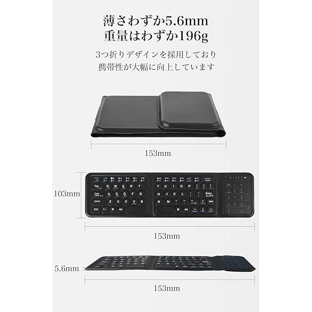 【厚さわずか5.6mm、開けば効率アップ!】ポケットにもスッと入る超薄型3つ折りデザインで、オフィスやカフェ、旅行先でも気軽に持ち運び可能。開けばすぐに作業モード突入、どこでも快適なタイピングを実現します。