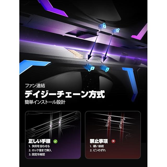 購入前に知っておくべきこと: 1. あなたは逆向(吸気)を閲覧しています) 2. エアダクトの合理的なレイアウトのために、正向(排気)と逆向(吸気)の両方を購入してください。3. 4 台以上の PC ファンを同時に直列に接続すると、PC ファンの動作が不安定になるため、お勧めしません。4 台以上の PC ファンを同時に直列に接続する必要がある場合は、ハブを使用してファンに電力を供給してください。(これは、市販されているすべての PC ファンに当てはまります) 4. デイジーチェーンファンです。ファン3台にケーブル1本のみ必要です。ケーブル管理は簡単です。ケーブル1本で最大6台のファンに対応できます。1パッケージにケーブル1本、3パッケージにケーブル2本が付属します。必要に応じてご購入ください。