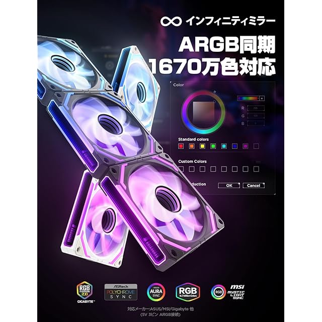AsiaHorse COSMIQ PCケースファン 120MM 3本 逆向(吸気) [ARGB インフィニティミラー] デイジーチェーン RGB ファン 4Pin PWM 5V 3Pin ARGB 2000RPM/風量68.5CFM/高精度・高性能FDBベアリング/作動時間50,000時間 Asus Aura ASRock GIGABYTE MSI RGBとの互換性あり COSMIQ-黒-R