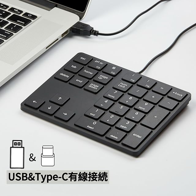 Levieny テンキー [有線/USB Type-C両対応] 薄型 34キー テンキーボード Tabキー付き テンキー usb ミニキーボード 外部 PC/Laptopなどに対応 多機能ナンバーパッド (ブラック)