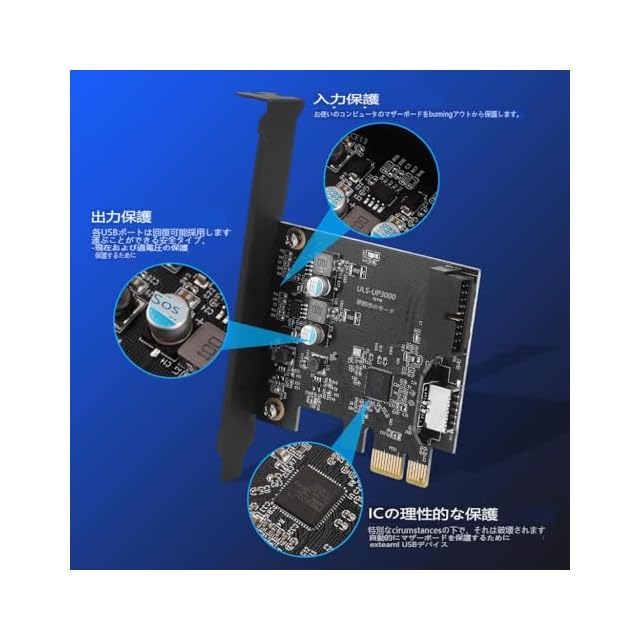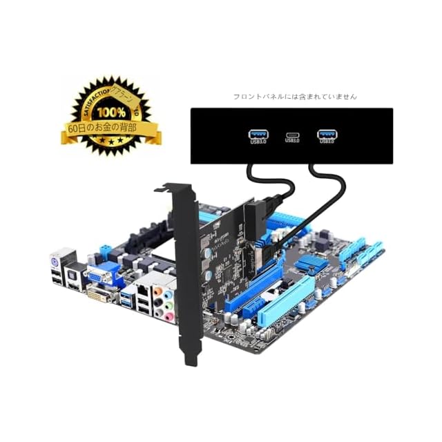 【フロント USB + USB C 拡張カード】デスクトップ PC の空き PCIE x1 以上のスロットから、フロント USB 3.2 Gen 1 ポート x 1 とフロント USB 3.2 Gen 1 Type-C ポート x 1 を拡張します