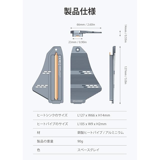 GRAUGEAR PS5専用のM.2 NVMe SSDヒートシンク、PlayStation 5対応の拡張スロットカバーと交換するタイプのヒートシンクについては、シャトル型のヒートシンク、ダイレクトタッチヒート銅製ヒートパイプ アルミニウムフィン、取り付け簡単 [G-PS5HS04]