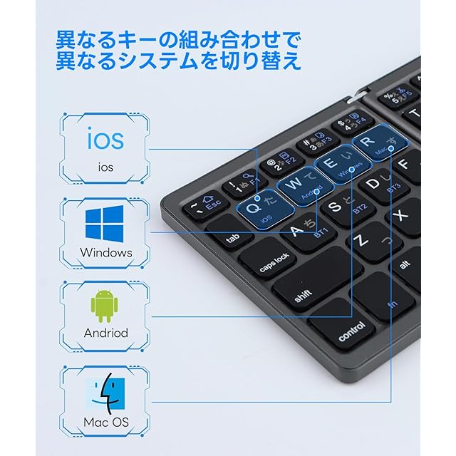 ✅【4つの主要OSに完全対応|iOS・Android・Windows・Mac】 このBluetoothキーボードは、iOS、Android、Windows、macOSの4つの主要システムに完全対応しており、iPhoneやiPad、Androidスマートフォン、タブレット、WindowsノートPC、MacBookなど、幅広いデバイスでシームレスに使用できます。専用の切り替えキーを搭載しており、OSごとのキー配置やショートカットにも対応しているため、操作性を損なうことなく快適にタイピングが可能です。ビジネスからプライベートまで、マルチデバイスを持つ現代ユーザーに最適な1台です。