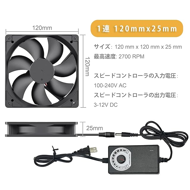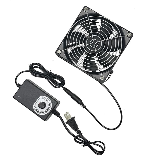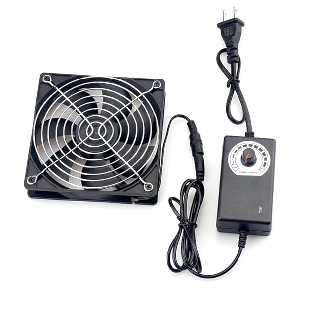 YOWEE 120mm 小型换気扇 DC 12V 冷却ファン ケースファン AC 100-220V スピードコントローラー付き、レシーバーアンプ用DVRプレイステーションコンポーネント冷却 温室 車中泊 换気扇