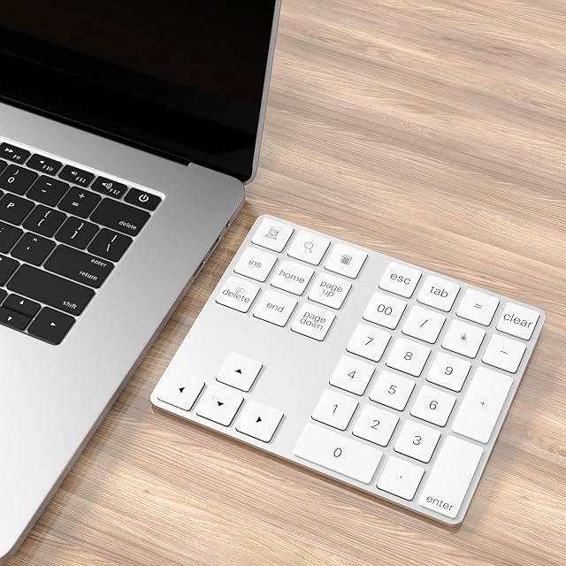 【34キーのフルサイズテンキー】34個のファンクションキー付きのワイヤレステンキーはホーム、終了、Numlock、Page up / down、Del、タブなどのキーがついており、数字の入力やスプレッドシート作成などお手軽です。