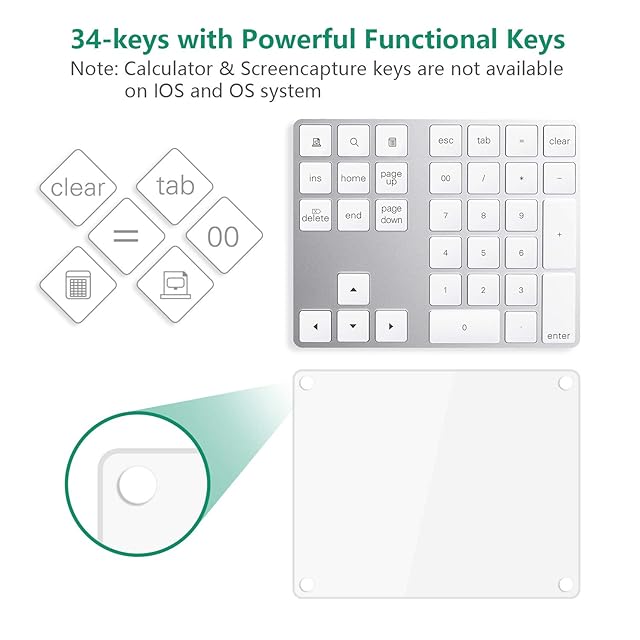 テンキー bluetooth Cateckテンキーワイヤレス [充電式] 34キー無線 数字キーボード ブルートゥース テンキー 人間工学設計 1000万回高耐久 持ち運び便利 コンパクト 小型 極薄型 Android/Windows/IOS 対応 MacsとPCs向けのデザイン