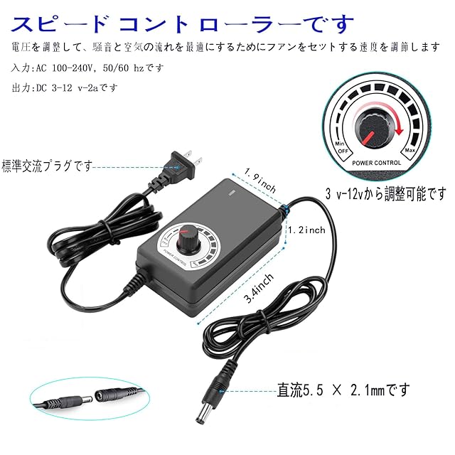 商品名:Pocaton 冷却ファン12cm 120mm x 38mm 強力排気 換気扇DC 12V ケースファン AC100V~240Vスピードコントローラー120mm空冷 調節 大風量 多用途扇風