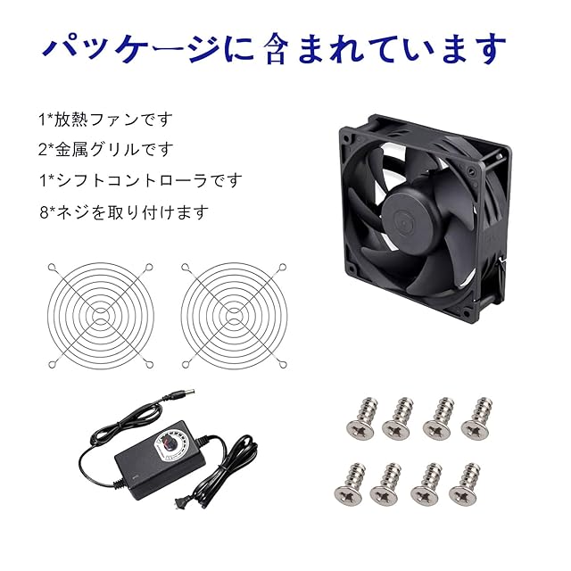 パッキング: ファン1個、ネット2個、取り付けネジ、スピードコントローラー1個