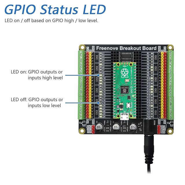 商品名:Freenove ユニバーサルブレイクアウトボード Arduino Nano Micro Raspberry Pi Pico 1 2 W ESP8266 互換、端子ブロックシールド HAT(ピンヘッダー付)、GPIOステータスLED、5 V 3.3 V