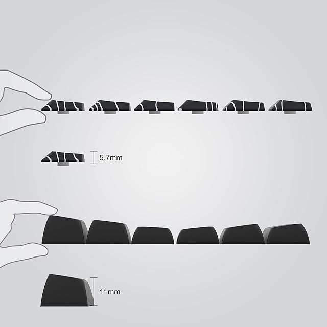 【ダブルショット技術】ダブルショット技術により、キーキャップの文字や色は、鮮やかさと彩度を維持し、クリアで色あせない。高含有率PBT材料から作られ、1.3mm厚のキーキャップ壁は、一流の耐久性、優れたタッチおよび耐油性を提供します。