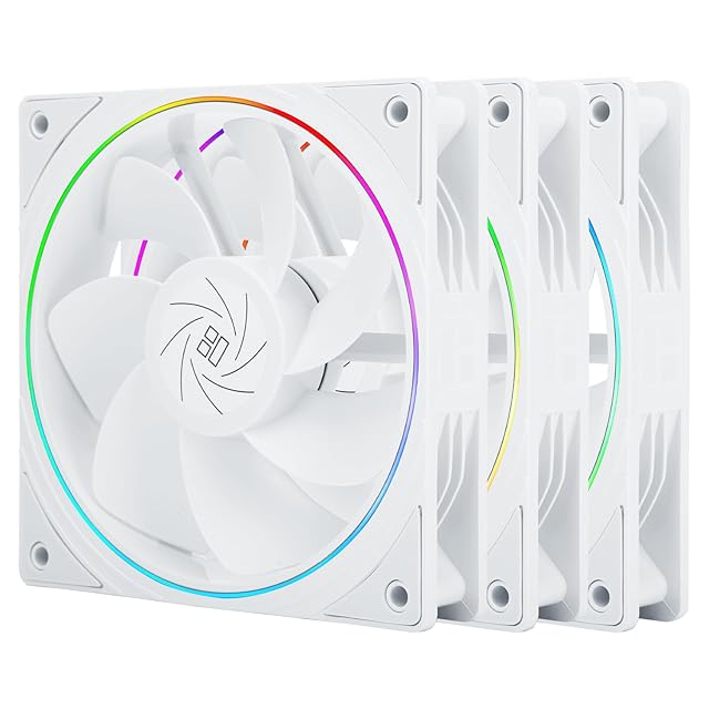 Thermalright TL-S12RW X3 CPUファン 120mmホワイトコンピュータクーラーファン、ファインアパーチャARGB Halo PCファン、逆エアフローデザインケースファン、1500RPMスピード(3パック)