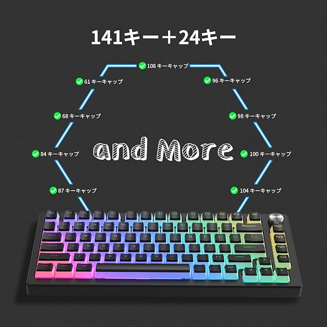 商品名:165キー プリンキーキャップ PBTキーキャップ 141キー+24キーセット カスタムキーキャップ OEMプロファイル 60%、65%、75%、100%のキーボードに対応 透明感 ユニバーサルタイプ(ブラック)