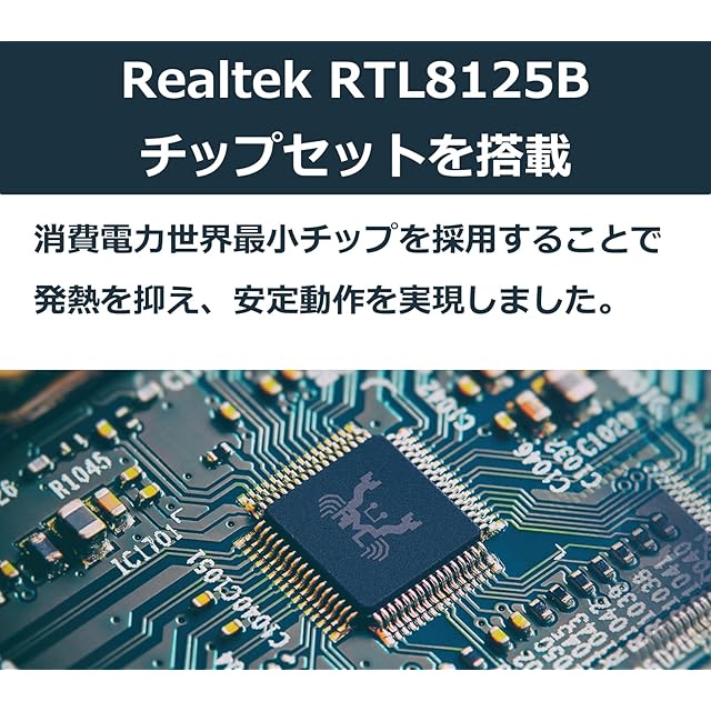 Realtek RTL8125Bチップセットを搭載した2.5GbEコントローラーを採用しています。RTL8125Bは、世界最小の消費電力700mW以下を実現し、発熱量も削減され、マルチギガビットLANで安定した動作を実現します。