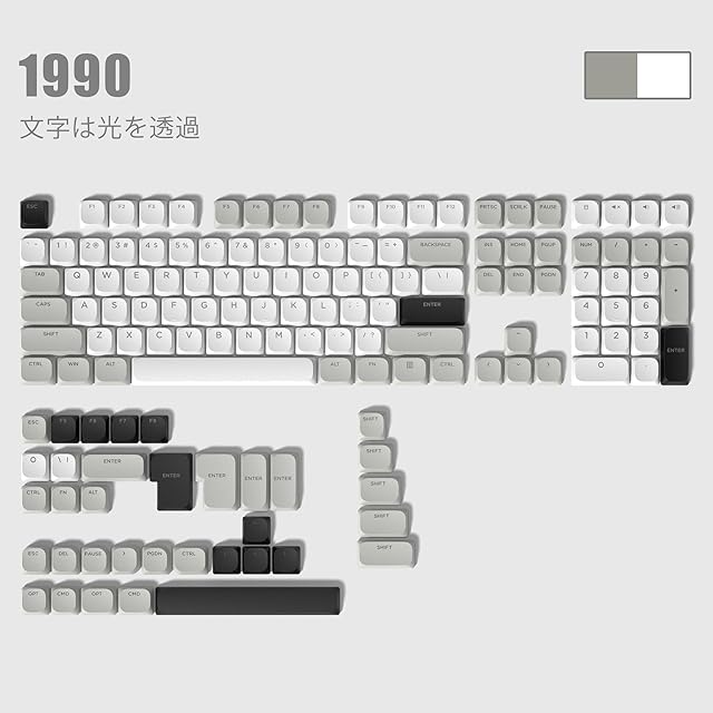 商品名:キーキャップ 143キー Womier ロープロファイル PBT キーキャップ フルセット 60% 65% 75% 100% Cherry Gateron MX スイッチキーボード用 ブラック/グレー/ホワイト