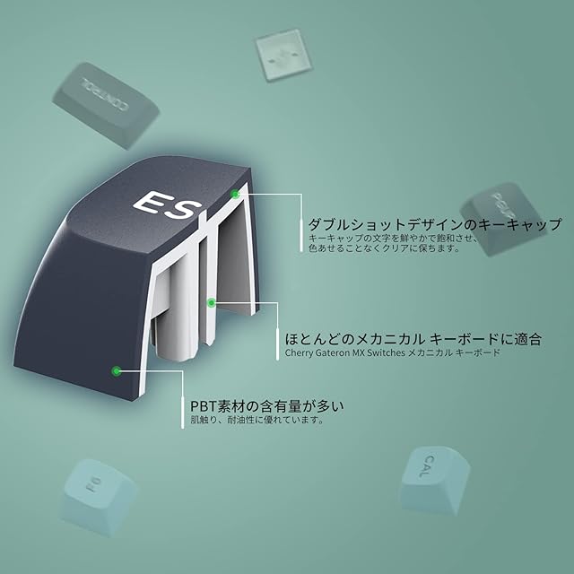 【耐久性、耐油性】高含有率PBT素材を使用し、0.2cmの極厚キーキャップ壁で、一流の耐久性、優れたタッチ、耐油性を提供します。