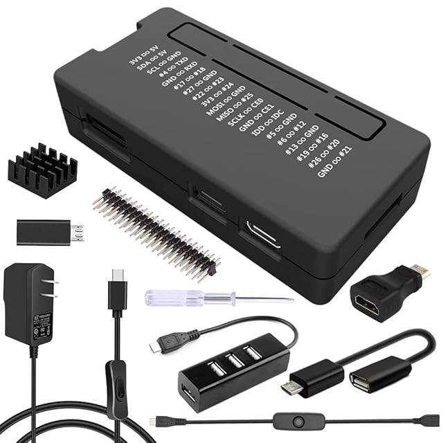 GeeekPi Raspberry Pi Zero 2 Wケースキット(Raspberry Pi Zero 2 Wケース、電源、ヒートシンク、20Pin GPIOヘッダー、4ポートUSBハブ、ON/OFFスイッチケーブル付き、Pi Zero 2 W/Pi Zero用