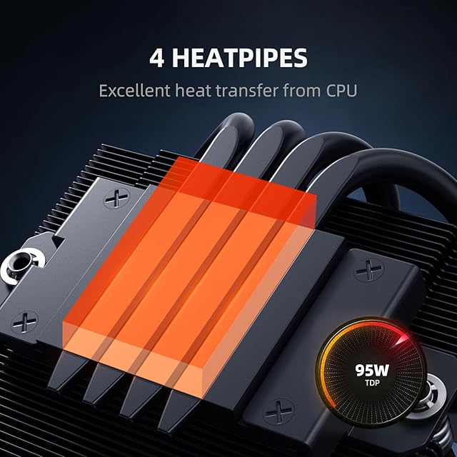 【より良い放熱性能】低背型CPUクーラーには4本のヒートパイプと92mmのPWMファンが搭載され、CPUからの優れた熱伝導を確保します