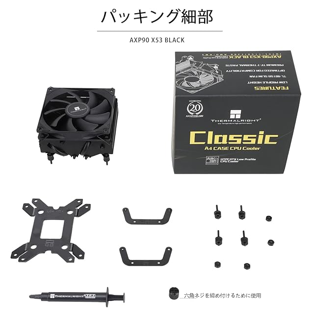 商品名:Thermalright AXP 90 X 53 BLACK CPU風冷放熱器、下圧式黒化版放熱器、4本のAGHPホットパイプを含み、AMD/Intel 1150/1151/1155/1156/1200プラットフォームをサポートし、油圧軸受鋳造、PMWファン内蔵、取り付けやすい(シリコン脂質送り)