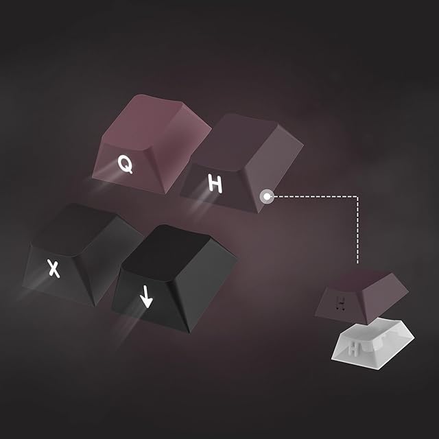 【ダブルショット】ダブルショットデザインキーキャップは、互いに成形された2色の材料から作られ、キーキャップの文字が鮮やかさと彩度を維持し、明確でフェードしないようにします。