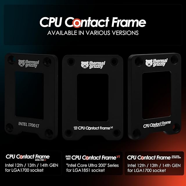 Thermal Grizzly - CPUコンタクトフレーム Intel 1851 V1 - 冷却性能を向上させるための最適化されたCPU接触圧力 - 簡単取り付け - Intel Core Ultraシリーズ CPU LGA1851ソケット用