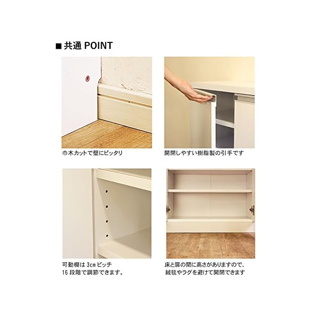 可動棚:4枚(3cmピッチ16段階)、耐荷重:5kg/棚