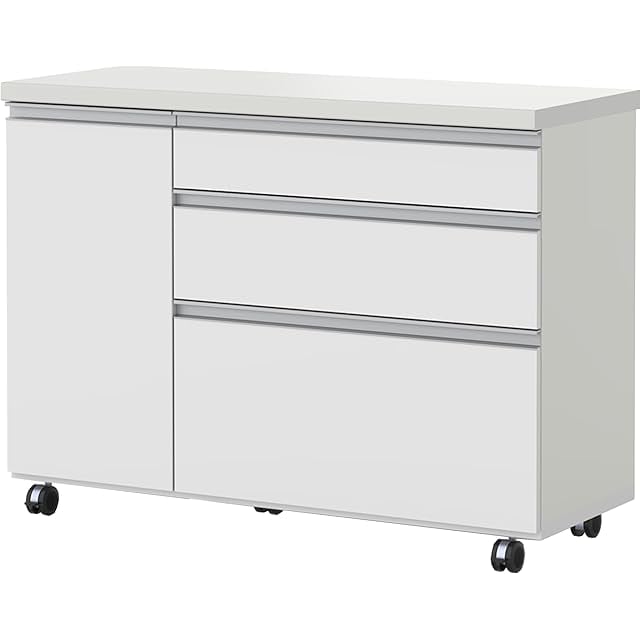 パモウナ(Pamouna) 食器棚 キッチンカウンター 幅120×奥行47.2×高さ88.1cm ロータイプ レンジ台 引き出し 収納 キャスター付き AW-120W プレーンホワイト