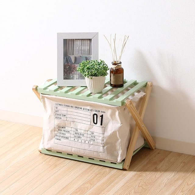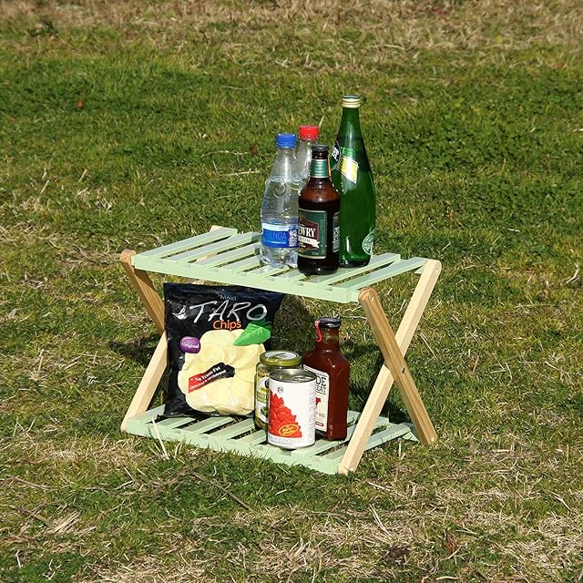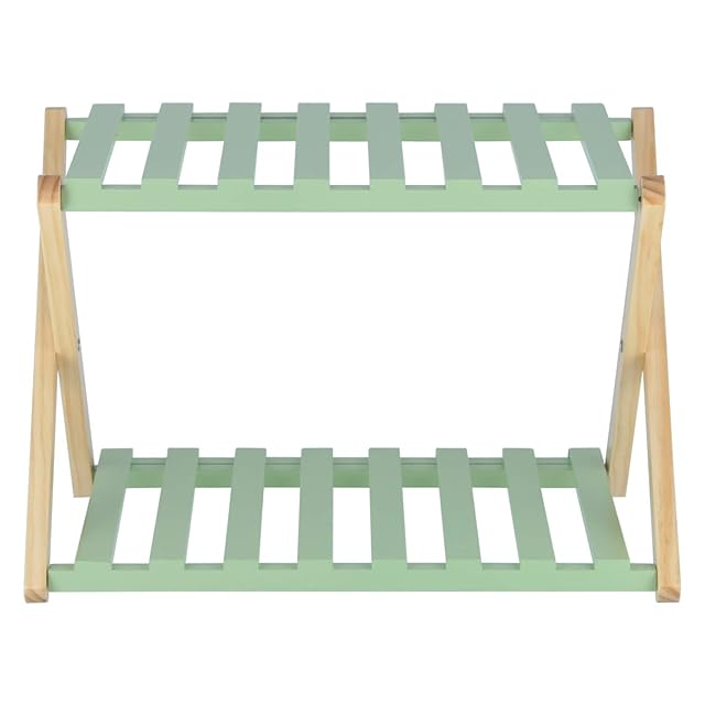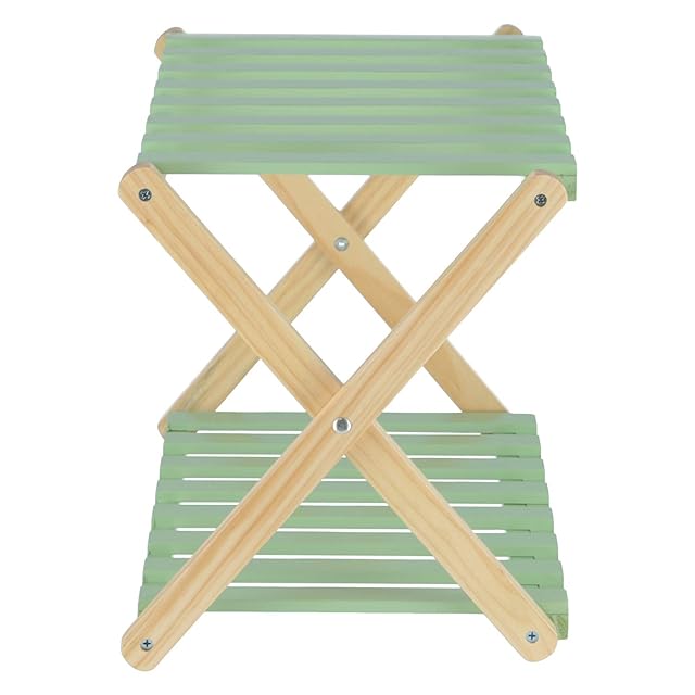 不二貿易 折りたたみラック 幅45cm 高さ32cm グリーン 2段 木製 インナーボックス対応 リム 72152