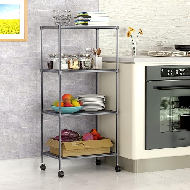 メタルラック 4段 スチールラック本体 キッチン収納ラック キャスター付きラック メタルシェルフ 収納棚 キッチン収納 幅45x奥行31x高さ105cm ポール径12mm 防サビ加工 食器棚 家・職場・キッチン・倉庫などに大活躍 サビに強い 省スペース棚 軽量ラック 業務用 組立簡単