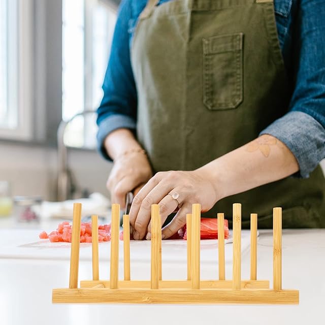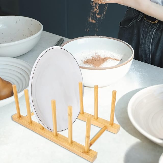 Amosfun 皿立て ディッシュスタンド 木製 ディッシュラック お皿収納 食器収納 水切りラック 鍋蓋収納ラック 簡単取り付け キッチン収納 多用途 五つ仕切り 間隔幅3.5cm
